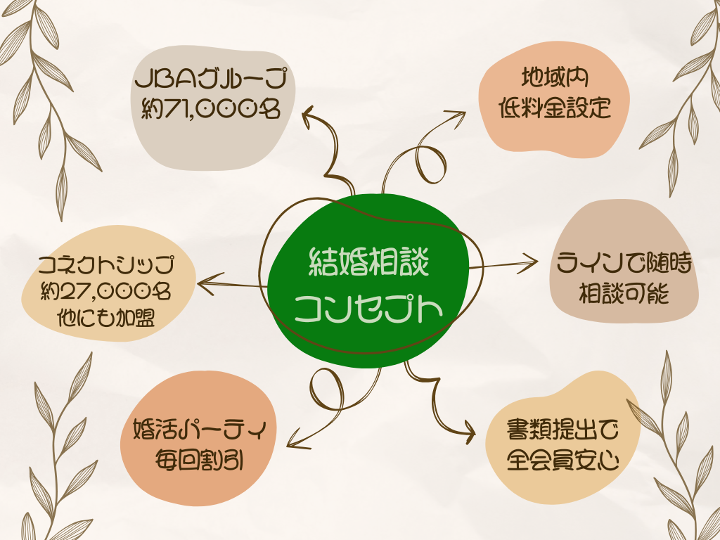JBAと言う結婚相談のグループに加盟しておりますが、良縁会,BIU、ノッツェの会員様も閲覧する事が出来、JBUと言う加盟グループにも所属しております。